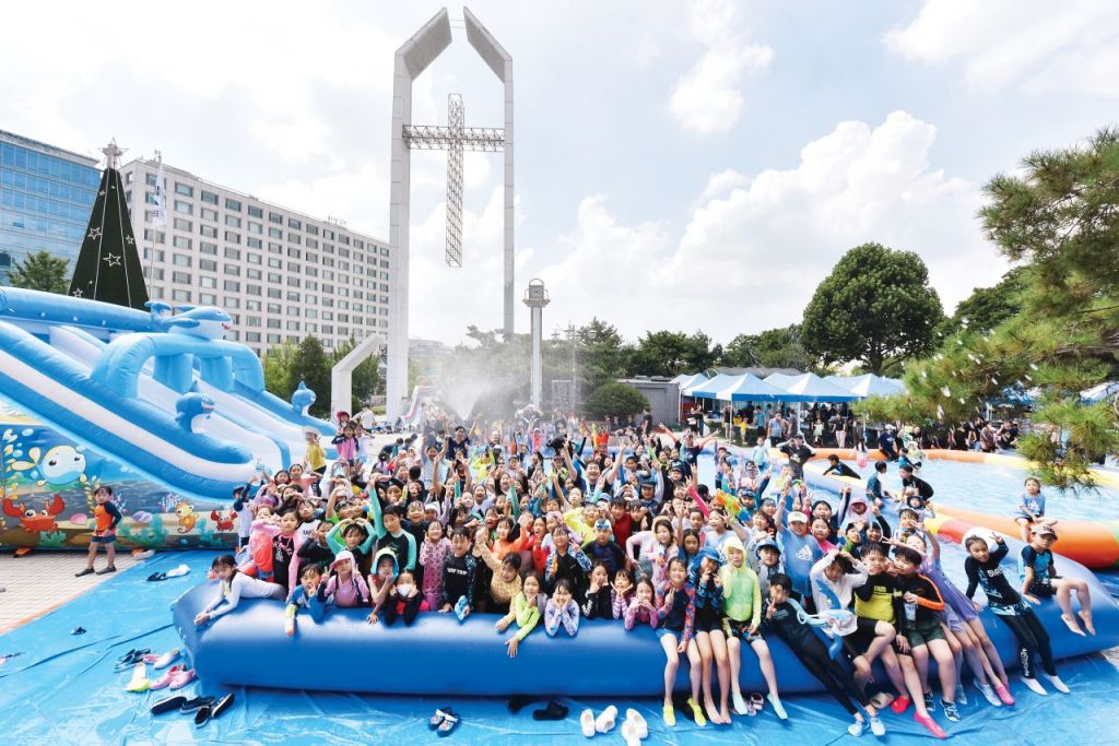 여의도순복음교회에서 진행한 행사에서 어린이들이 기념촬영하고 있다. 여의도순복음교회