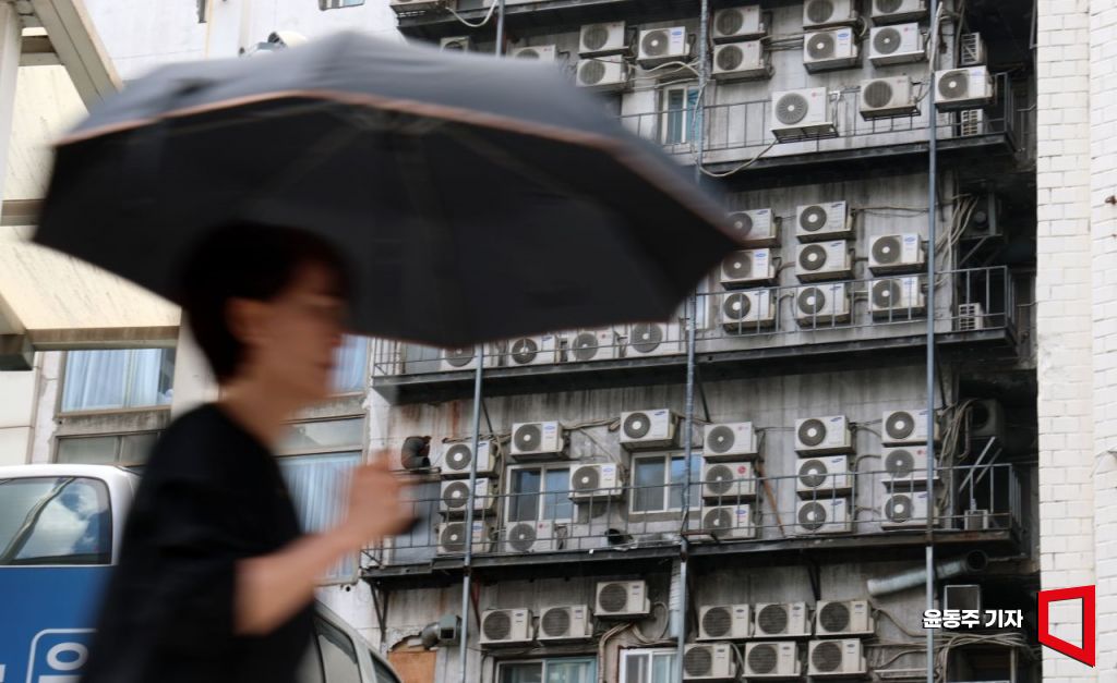 장마와 함꼐 전국적은 폭염이 지속되면서 습하고 더운 날씨가 이어지고 있는 1일 서울 중구 남대문 시장 인근 건물에 에어컨 실외기가 설치되어 있다. 2025.07.01 윤동주 기자