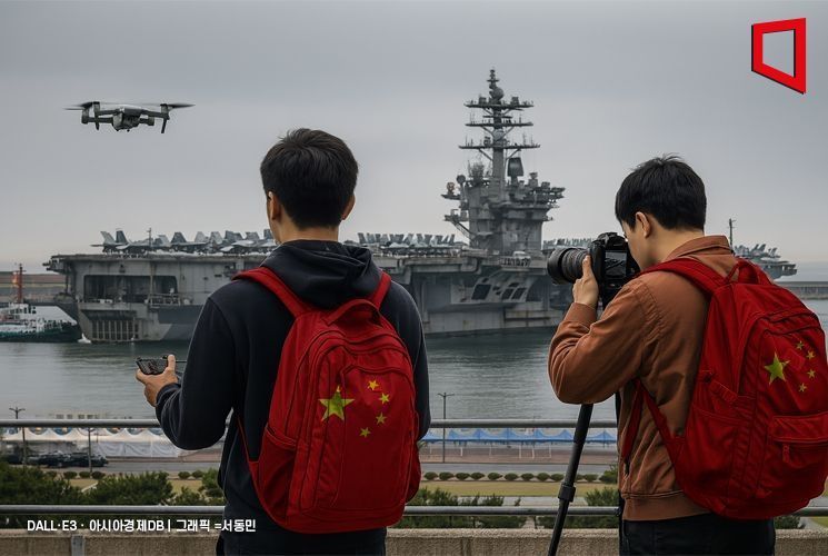 A씨 등은 2023년 3월부터 2024년 6월까지 부산 남구 해군작전사령부 인근에서 해군 기지 내부와 미 해군 항공모함 시어도어 루스벨트함(10만t급) 등을 드론과 개인 휴대전화로 9차례 걸쳐 불법 촬영한 혐의를 받는다.