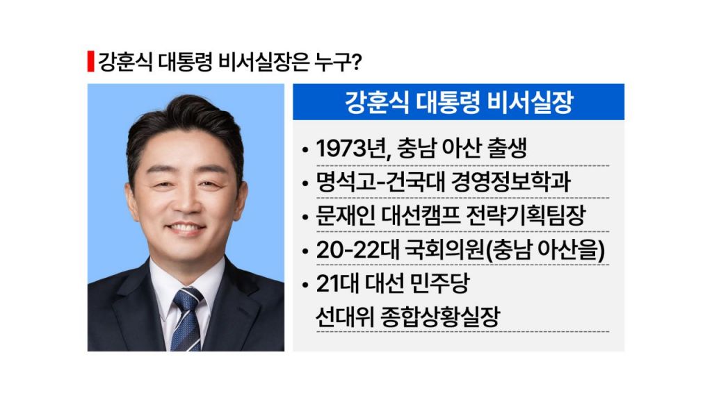 현역 3선 의원이 국회의원직을 버리고 대통령 비서실장이 된 경우는 없었다. 강훈식 대통령 비서실장이 유일하다. 장관급인 대통령 비서실장은 대통령의 국정 운영을 최일선에서 뒷받침하는 핵심 중의 핵심 참모다. 대통령의 일정은 물론 주요 인사, 정책 추진, 부처 업무 조정에도 영향을 미치며 대통령실 전반에 대한 관리 책임도 진다.