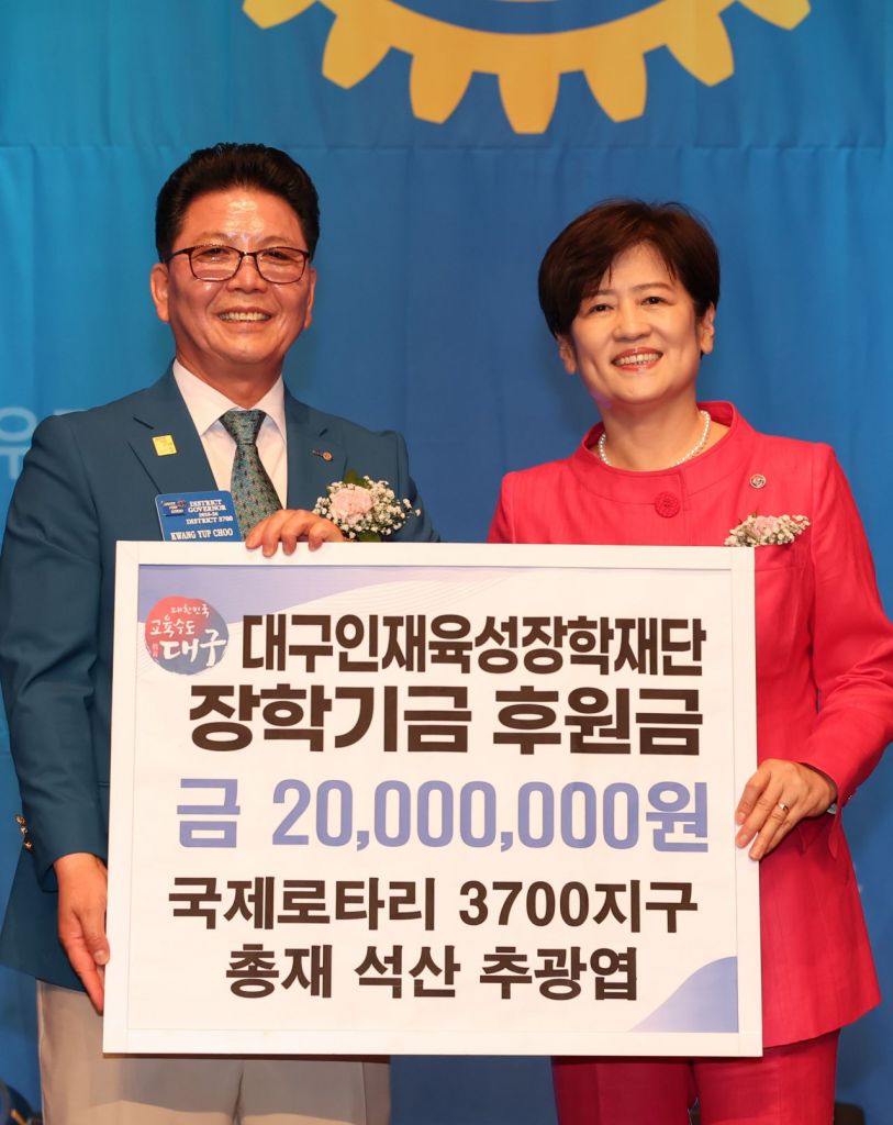 대구시교육청(교육감 강은희)은 '국제로타리 3700지구'의 추광엽 총재가 대구인재육성장학재단에 장학금 2000만원을 기탁해왔다고 2일 밝혔다.