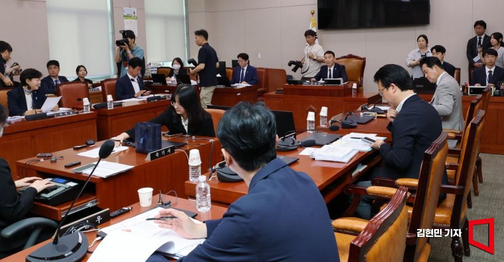 2일 국회 법제사법위원회 법안심사제1소위원회에서 더불어민주당 소속 김용민 소위원장이 상법 일부개정법률안 등 안건을 상정하고 있다.