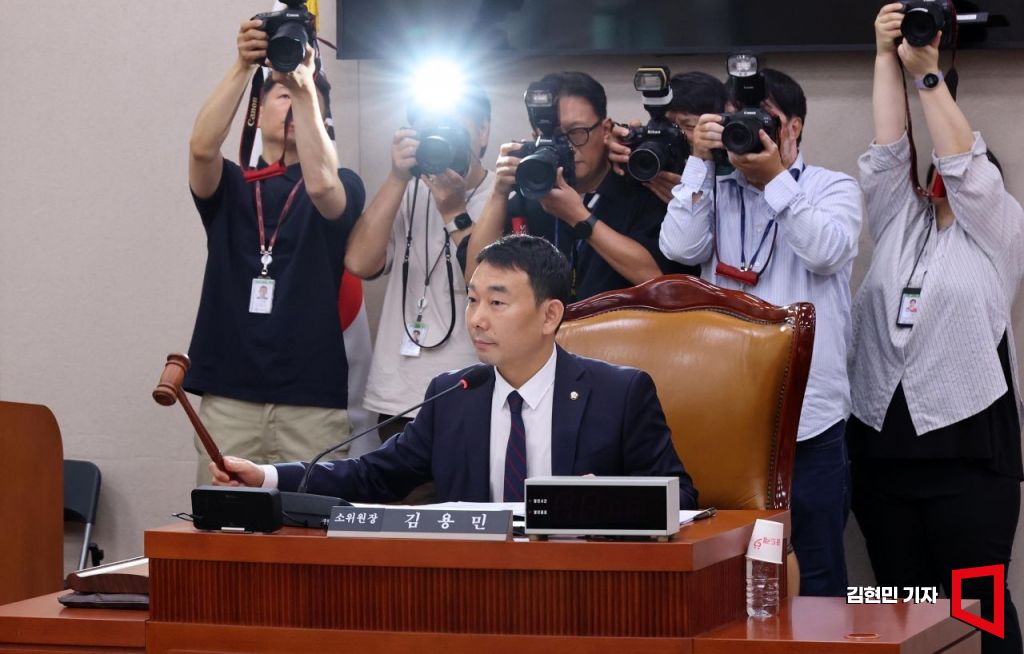 2일 국회 법제사법위원회 법안심사제1소위원회에서 더불어민주당 소속 김용민 소위원장이 상법 일부개정법률안 등 안건을 상정하며 의사봉을 두드리고 있다. 2025.7.2 김현민 기자
