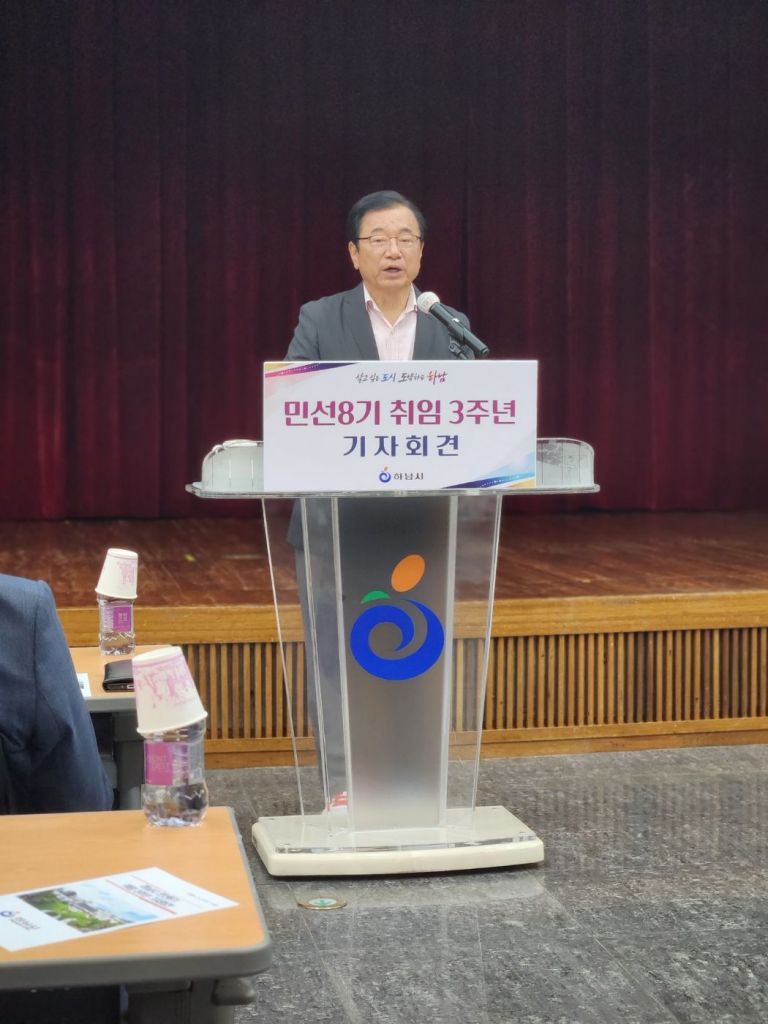 이현재 하남시장은 2일 민선 8기 취임 3주년 기자회견에서 "K-스타월드, 캠프콜번, 교산신도시 자족용지 개발과 함께 우수 기업을 적극 유치해 향후 5년 내 1인당 지역내총생산(GRDP)을 두 배 이상 끌어올리고 일자리가 풍부한 자족도시로 도약하겠다"고 밝혔다.