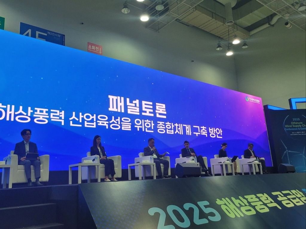 2일 부산 벡스코에서 열린 '2025 해상풍력 공급망 컨퍼런스'의 부대 행사인 '해상풍력 산업 육성을 위한 종합 체계 구축방안' 컨퍼런스에서 패널들이 토론하고 있다. 강희종 기자