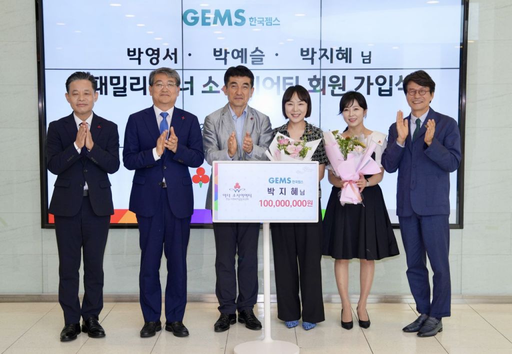 주인공은 ㈜한국젬스 신규사업본부 박지혜 본부장으로, 사회복지공동모금회 고액기부자 모임인 아너소사이어티의 전남 158호, 구례 11호 회원으로 가입했다.