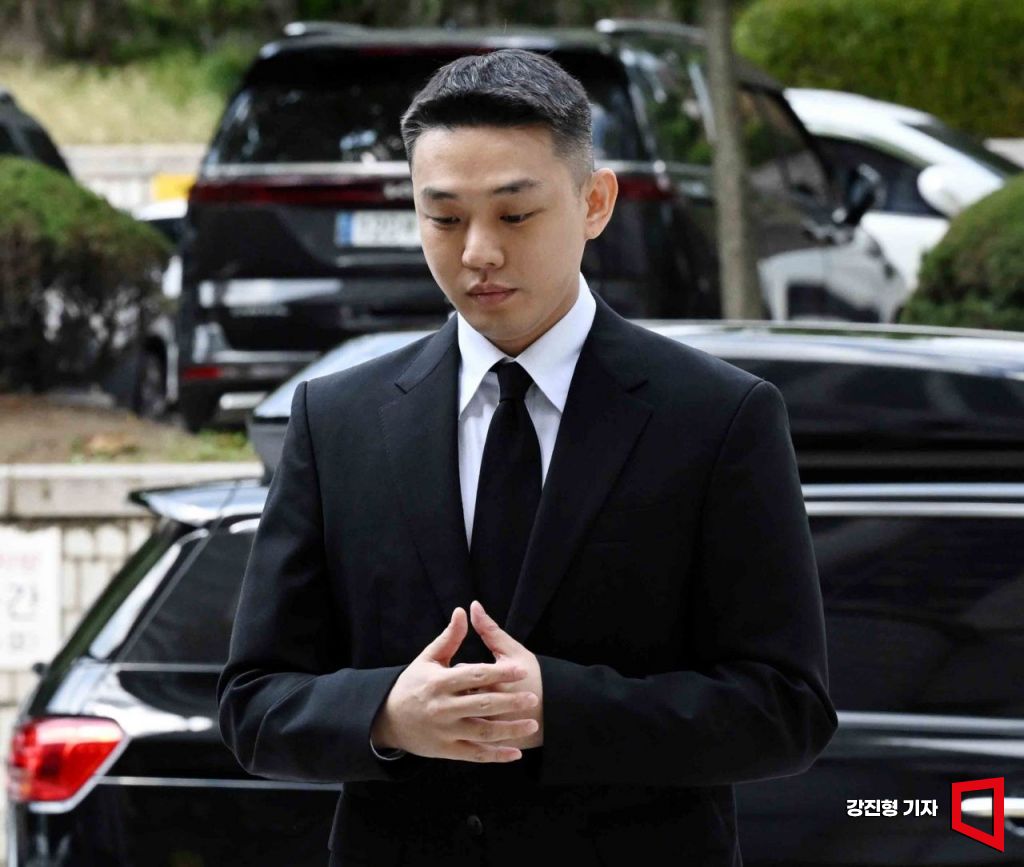프로포폴 상습 투약 혐의로 기소된 배우 유아인(본명 엄홍식)이 3일 서울 서초구 서울중앙지방법원에서 열린 1심 선고에 출석 하고 있다. 사진=강진형 기자aymsdream@