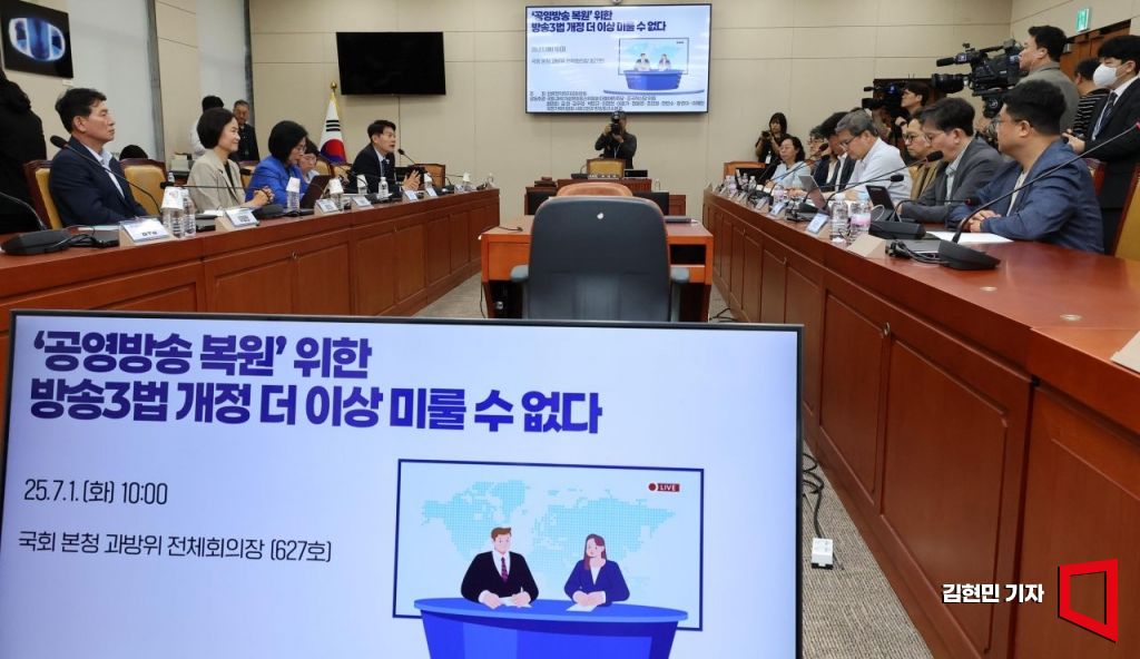 1일 국회에서 '공영방송 복원 위한 방송3법 개정, 더 이상 미룰 수 없다' 긴급토론회가 열리고 있다. 2025.7.1 김현민 기자