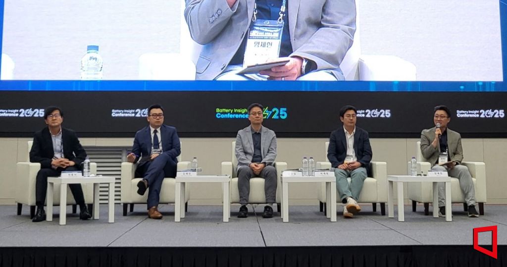 2일 충북 청주 오스코에서 열린 '배터리 인사이트 컨퍼런스 2025'에서는 국내 배터리 소재 기업 관계자들이 참석해 국내외 어려운 환경을 조명하고, 글로벌 시장 돌파 전략을 모색했다. 사진 왼쪽부터 최종서 한국배터리산업협회 상무, 김재천 아프리오 어드바이저리 그룹 회계사, 김준형 SK아이이테크놀로지(SKIET) 부사장, 박재범 포스코경영연구원 수석연구원, 양제헌 에코프로 이사. 심성아 기자