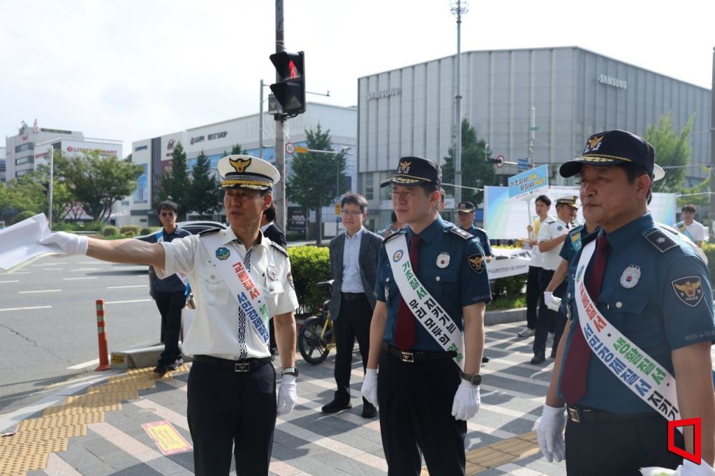 캠페인은 대구시자치경찰 위원회, 녹색어머니회, 모범운전자회, 한국도로교통공단, 한국교통안전공단 등 유관 기관·단체 관계자 120여명이 참여한 가운데 대구지역 11개 경찰서가 동시에 진행했다.