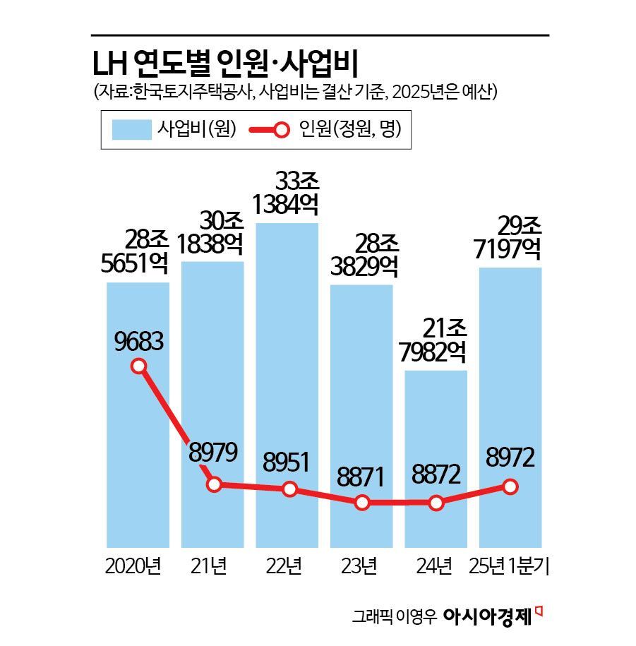 LH 관계자는 "주요 사업을 추진하는 과정에서 어느 정도 인력·조직이 적당한지를 살펴보기 위한 목적"이라며 "2021년 LH 혁신방안에 따라 인력을 줄이고 기능을 조정했는데 이후 각 분야에서 사업이 대폭 늘어난 터라 이를 효율적으로 추진할 체계를 갖출 필요가 있다고 판단했다"고 설명했다.