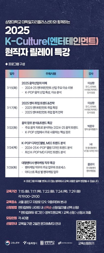 '지역청년과 함께하는 K-컬처 현직자 릴레이 특강' 포스터.상명대학교