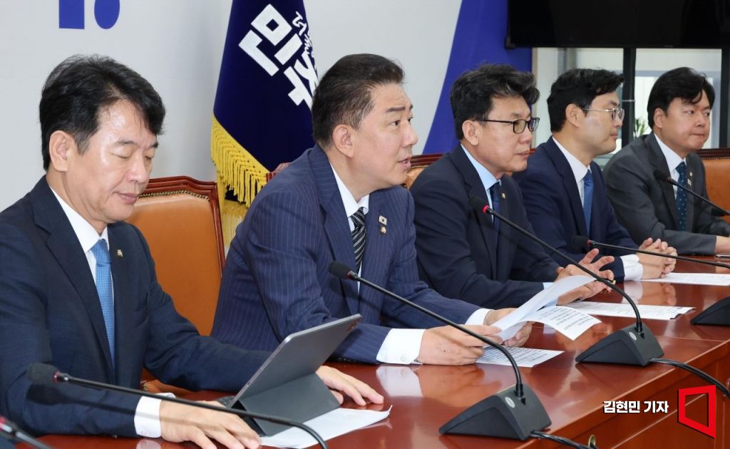 김병기 더불어민주당 당대표 직무대행 겸 원내대표가 3일 국회에서 열린 정책조정회의에서 발언하고 있다.