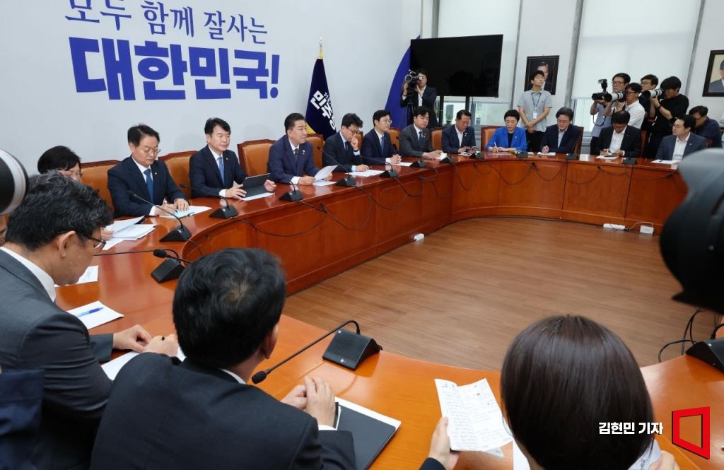 김병기 더불어민주당 당대표 직무대행 겸 원내대표가 3일 국회에서 열린 정책조정회의에서 발언하고 있다.