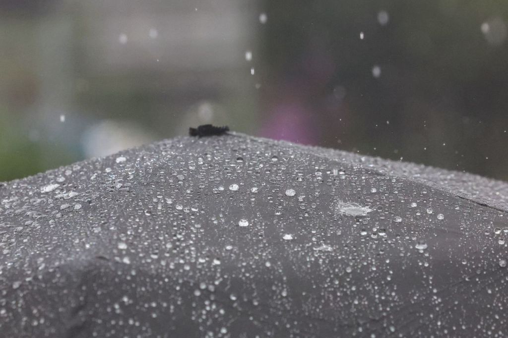서울 종로구 광화문 네거리에서 한 시민의 우산에 빗물이 튀기고 있다. 연합뉴스