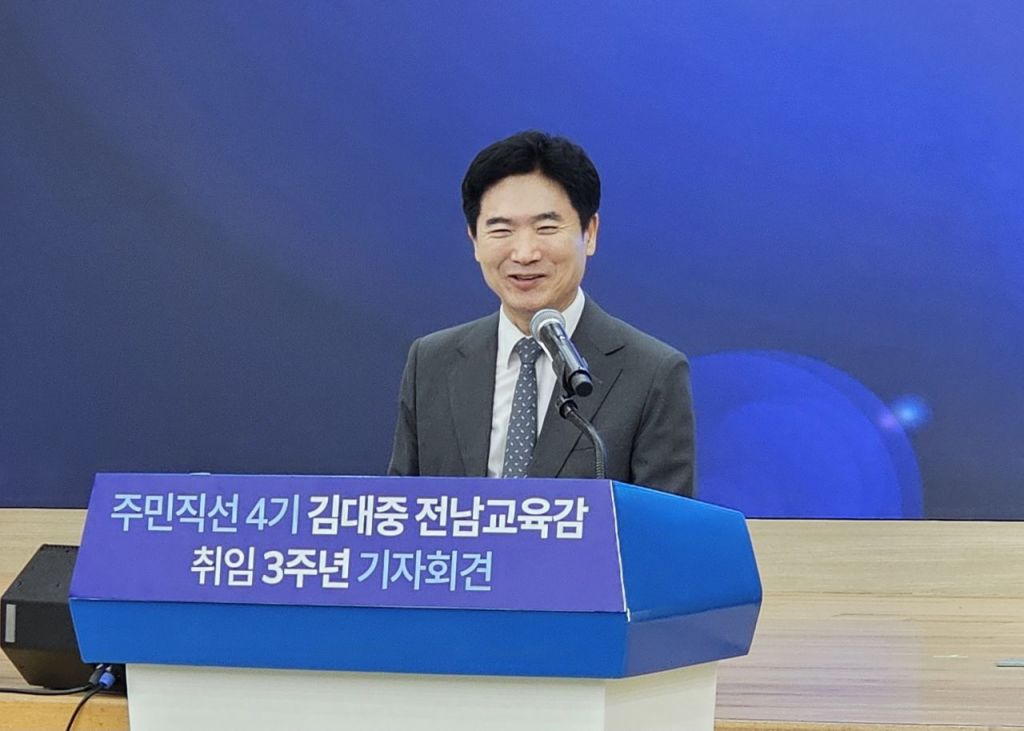 취임 3주년을 맞은 김대중 전남교육감은 3일 도교육청에서 기자간담회를 열고 "교사가 교육 본연의 역할에 집중할 수 있도록 현장을 재정비하고, 삶·공부·진로가 통합된 전남형 K-교육 체계를 완성해 나가겠다"고 밝혔다.