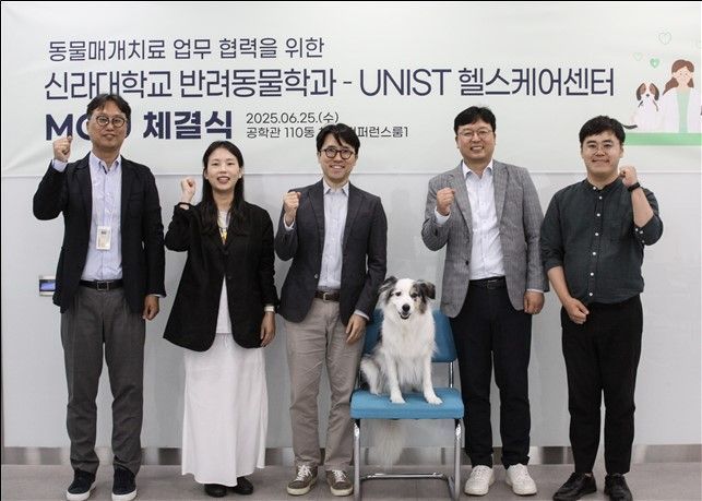 두 기관은 지난 6월 25일 △동물매개치료 프로그램 공동 운영 △현장 실습·인턴십 기회 제공 △연계·융합형 전신건강 증진 프로그램 개발 △공동연구 및 학술 교류 등을 골자로 협력 체계를 구축하기로 했다. 협약식에는 신라대 반려동물학과 배일권 교수와 UNIST 헬스케어센터 정두영 센터장이 참석했다.