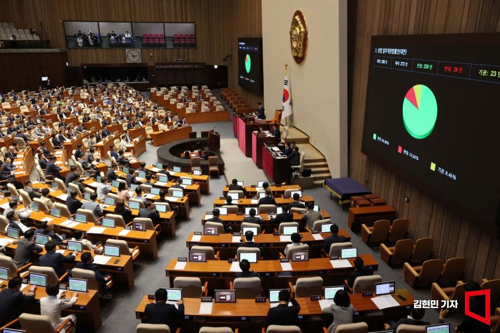 [포토] '李정부 민생1호' 상법개정안 국회 통과