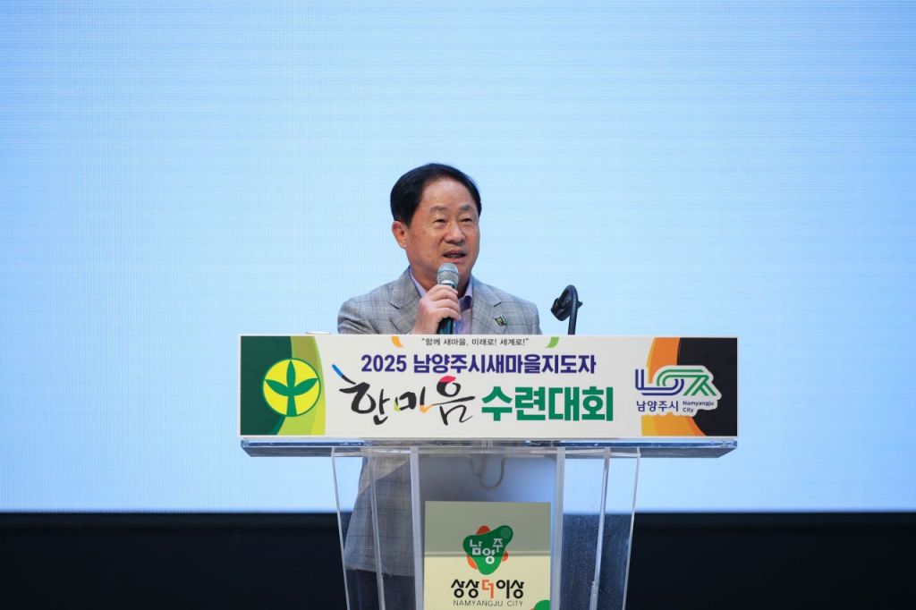 주광덕 남양주시장이 3일 남양주체육문화센터 실내체육관에서 열린 '2025년 남양주시새마을회 한마음 수련대회'에 참석해 인사말을 하고 있다. 남양주시 제공
