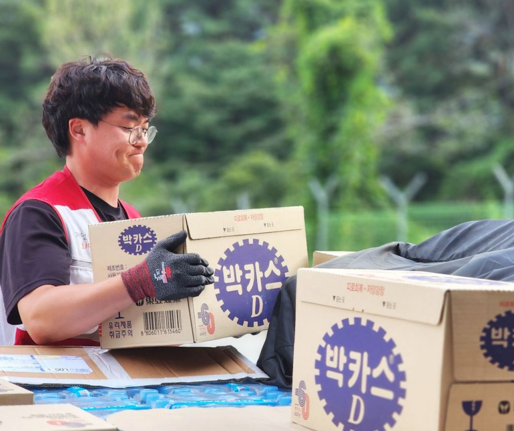 희망브리지 윤진혁 매니저가 함양재해구호물류센터에서 이재민에게 전달할 구호물자를 옮기고 있다. 희망브리지