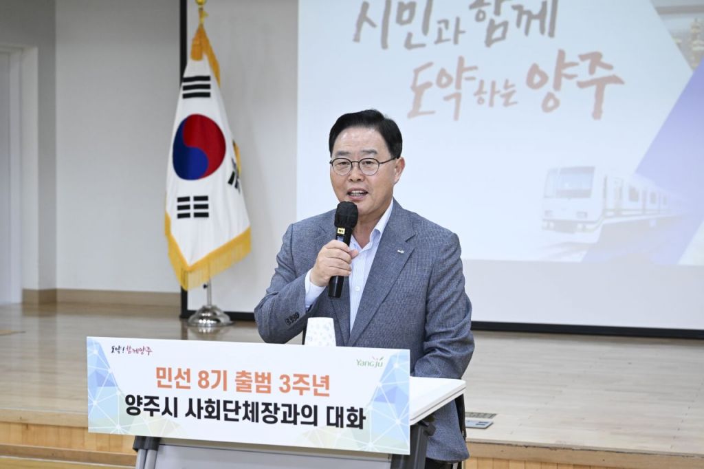 경기 양주시(시장 강수현)가 3일 오후 관내 옥정호수도서관 대강당에서 '민선 8기 출범 3주년 사회단체장과의 간담회'를 열고 지난 3년간의 시정 성과를 공유하는 뜻깊은 자리를 마련했다.
