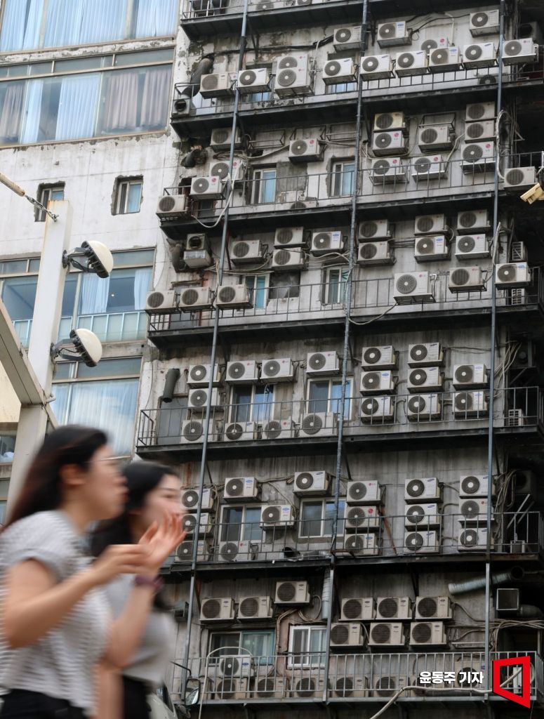 장마와 함꼐 전국적은 폭염이 지속되면서 습하고 더운 날씨가 이어지고 있는 1일 서울 중구 남대문 시장 인근 건물에 에어컨 실외기가 설치되어 있다. 2025.07.01 윤동주 기자