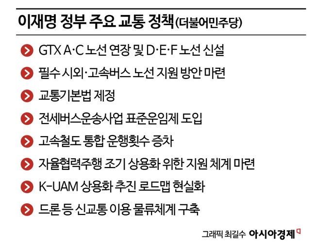 반면 교통 정책의 패러다임 전환을 위한 노력은 다소 부족해 보인다. 첨단·고부가가치 산업 육성을 위한 지원 확대, 교통수단 간 네트워크 통합 등은 이미 역대 정부에서도 다뤘던 대안들이다. 대선 기간 매머드급으로 꾸렸다던 '인구미래위원회'에서도 교통 분과는 찾아볼 수 없다. 위원으로 참여했던 한 관계자는 "교통 정책은 다른 분야와 달리 초거대 예산이 수년에 거쳐 투입되는 만큼 (이재명 정부에서도) 수요 변화를 반영한 정책 추진 로드맵을 세울 예정"이라고만 전했다.