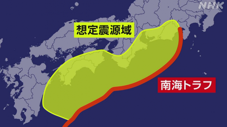 '난카이 트로프'로 불리는 난카이 해곡과 이로 인한 대지진이 발생할 가능성이 큰 지역. 일본 NHK