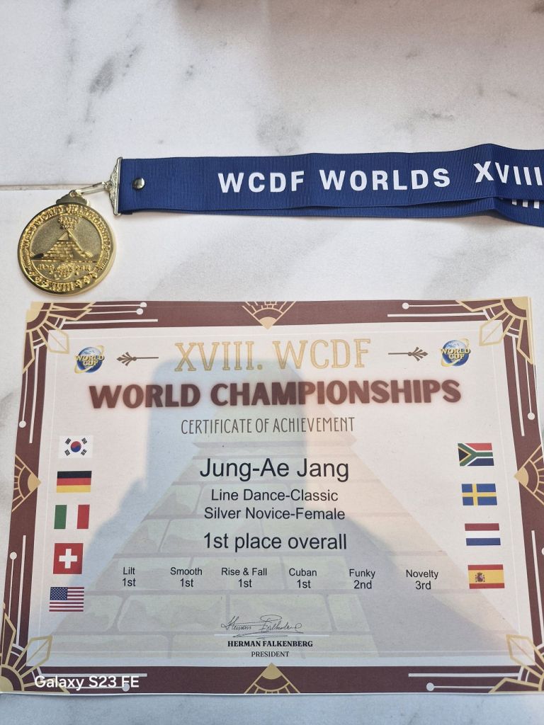 장 강사는 스페인 베니도룸 경기장에서 열린 2025년 세계컨트리댄스연맹 대회에 참가해 'Line classic intermediate siver' 부문과 오픈경기 부문에서 1위를 차지했다.