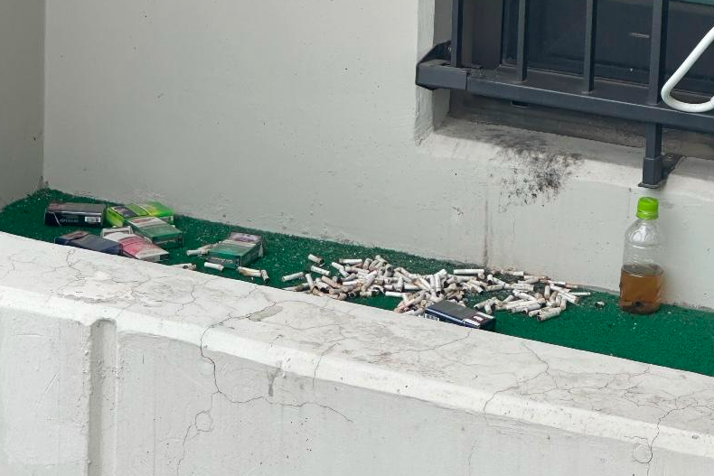 한 아파트 주민이 실내흡연을 하는 이웃 때문에 고통 받고 있다고 토로했다. 사진은 창틀 아래에 여러 개의 담배꽁초들이 쌓여 있는 모습. 보배드림