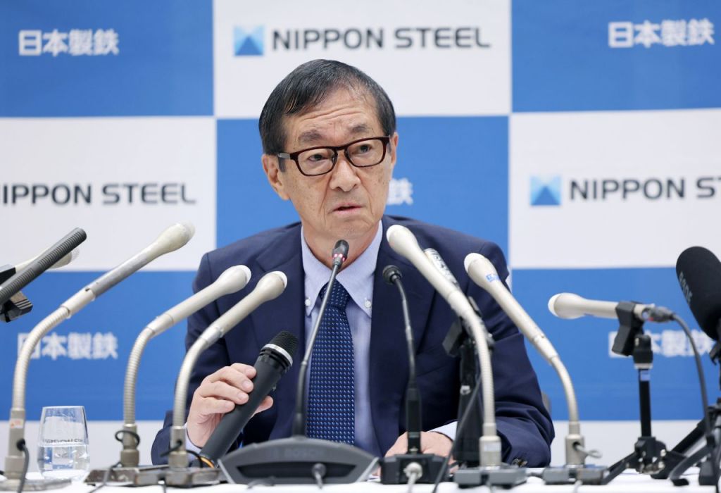 하시모토 에이지 일본제철 회장이 지난달 19일(현지시간) US스틸 인수를 마무리한 후 일본 도쿄에서 가진 기자회견에서 발언하고 있다. EPA연합뉴스