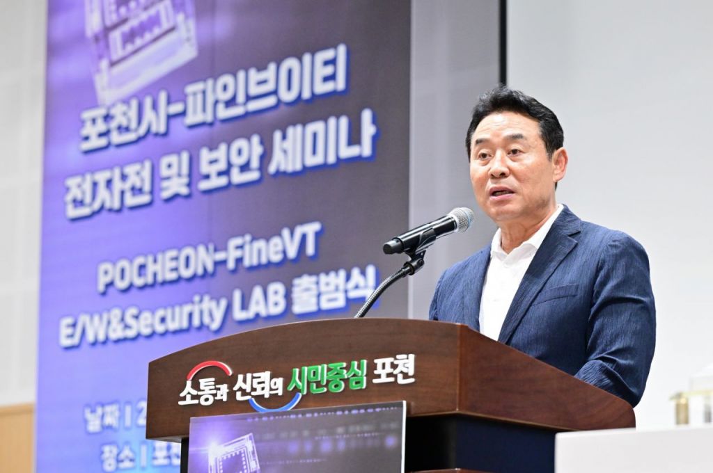 경기 포천시(시장 백영현)는 지난 7일 포천 비즈니스센터 컨벤션홀에서 UAV(무인항공기) 전문 제조기업인 파인브이티(대표 윤형영)와 함께 '전자전 및 보안 연구소' 개소하고 글로벌 얼라이언스 창립 세미나를 개최했다고 8일 밝혔다.