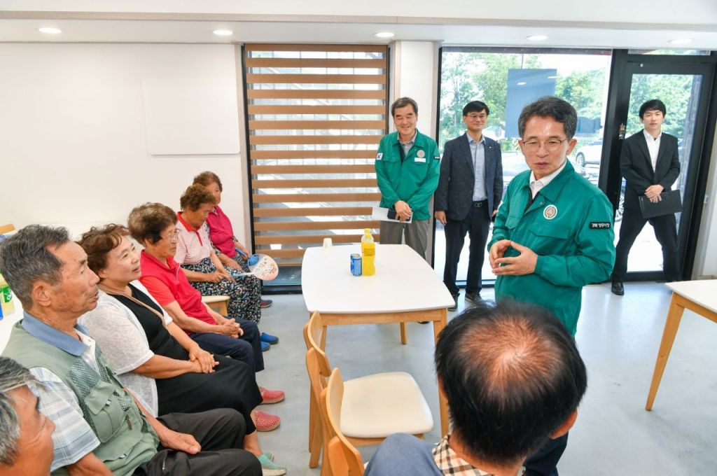 유정근 영주시장 권한대행이 무더위쉼터 현장점검을 실시하며 어르신들과 대화를 나누고 있다. 영주시 제공