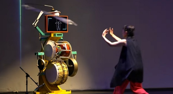 지능디자인의 부산 농악 기반 사물놀이 모션인식 AI 악기 로봇. 부산정보산업진흥원 제공