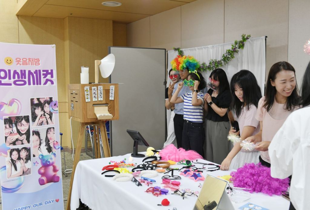 '행복약국'은 ▲마음처방(회복탄력성과 현재 감정의 이해를 돕는 그림 검사) ▲운세처방(타로카드를 활용한 상담) ▲웃음처방(세컷사진과 캐리커쳐 촬영) ▲자세처방(체형·보행 분석) 등 다양한 콘텐츠로 구성돼 직원들의 큰 관심을 끌었다.