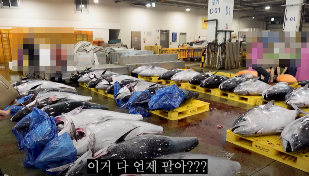 최근 노량진 수산시장으로 올라온 참다랑어(참치)들. 유튜브 방해물