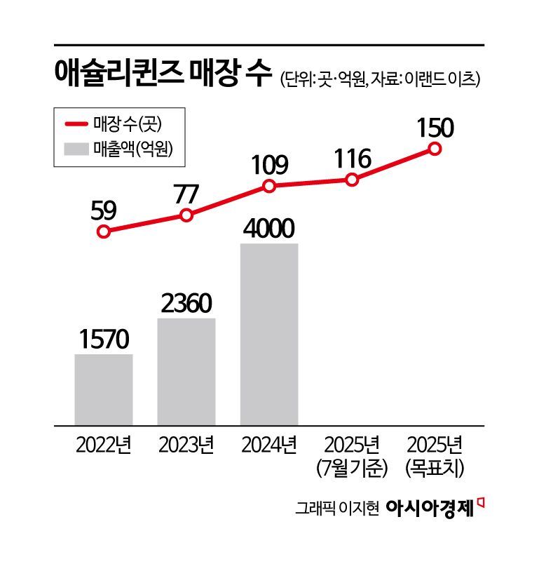 애슐리퀸즈의 매장 수는 꾸준히 늘고 있다. 현재 애슐리퀸즈의 매장 수는 115곳. 이랜드이츠는 2021년부터 애슐리W, 애슐리클래식 등 세분화했던 브랜드를 '애슐리퀸즈'로 단일화하고 매장 수를 효율적으로 조정한 뒤 공격적인 재확장에 나서고 있다. 애슐리 매장은 2014년 155개로 전성기를 누렸지만, 코로나19 팬데믹을 거치며 2022년 59개로 추락한 바 있다.