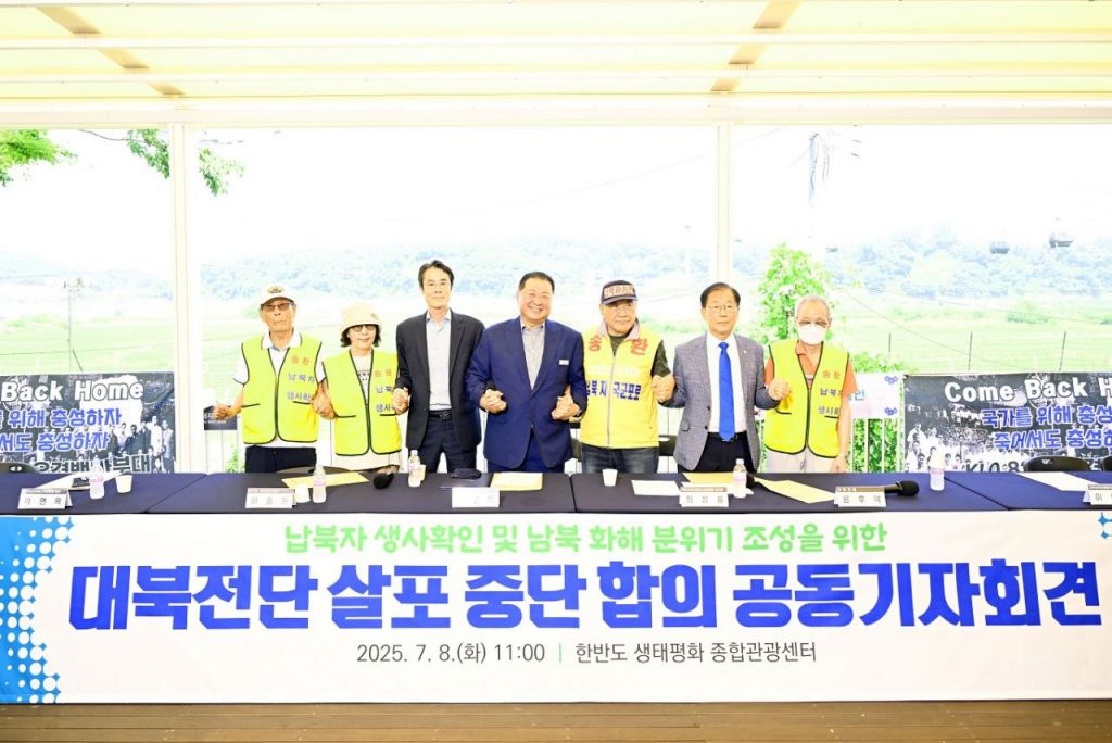 경기 파주시와 전후납북자피해가족연합회는 8일 파주시 임진각에서 기자회견을 열고 대북 전단 살포를 전면 중단하겠다고 공식 선언했다. 이는 지난 2023년 전단 살포를 재개한 지 약 9개월 만이다.