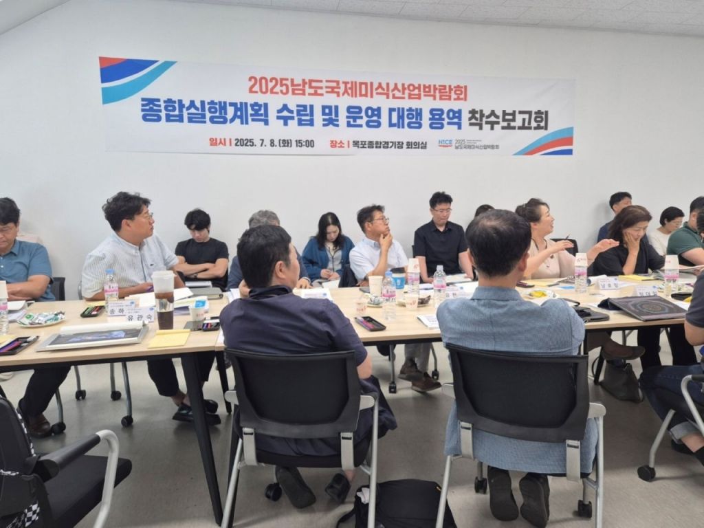 남도국제미식산업박람회사무국은 10월 목포에서 열리는 '2025남도국제미식산업박람회'를 성공적으로 개최하기 위해 종합실행계획 수립 및 운영 대행 용역 착수보고회를 지난 8일 목포종합경기장에서 개최했다.