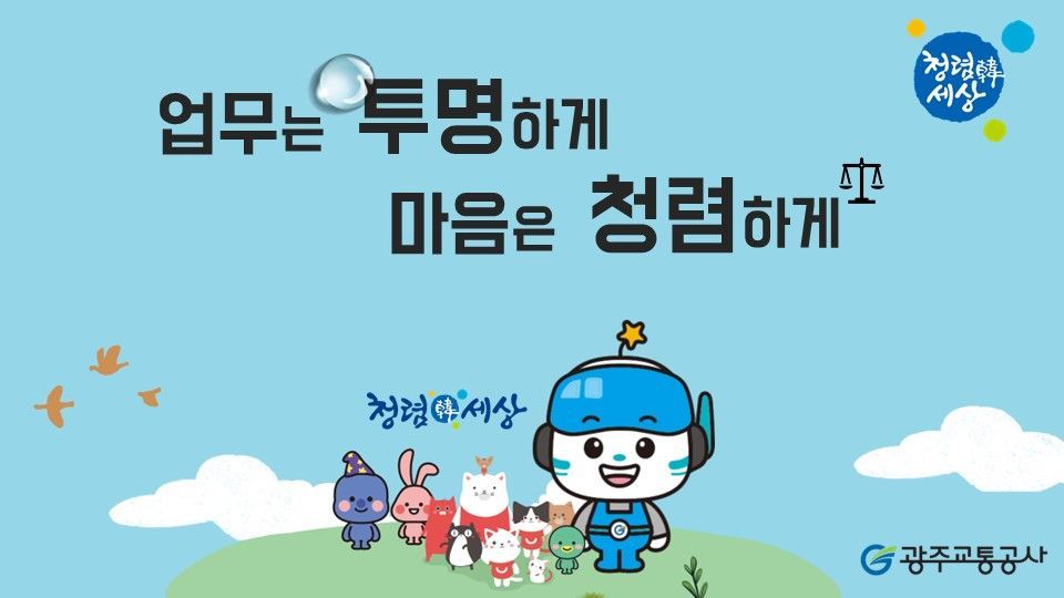 광주교통공사(사장 조익문)가 사내 업무용 전산망에서 활용할 수 있는 '청렴스크린세이버(청렴화면보호기)'를 자체 제작·배포해 임직원 윤리의식 제고와 청렴 문화 확산에 나선다.