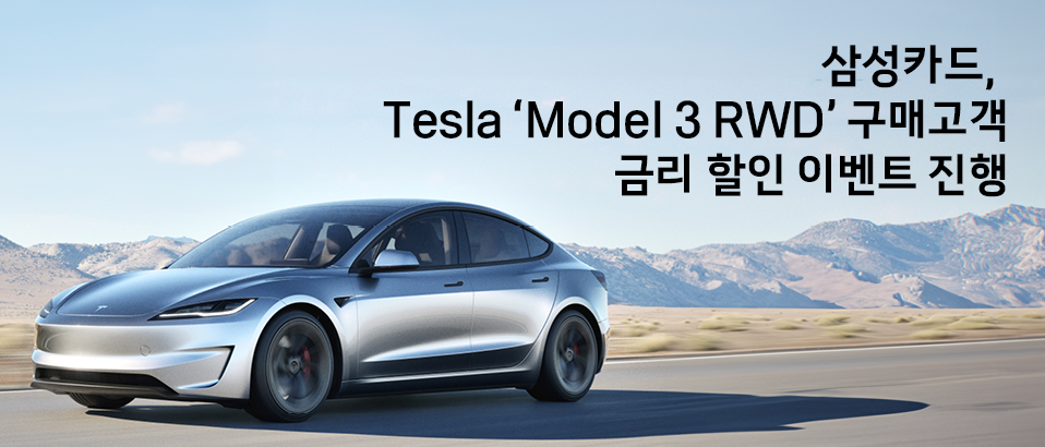 삼성카드는 테슬라와 함께 모델3 RWD 차량 구매 고객을 위한 금리 할인 이벤트를 진행한다고 9일 밝혔다.