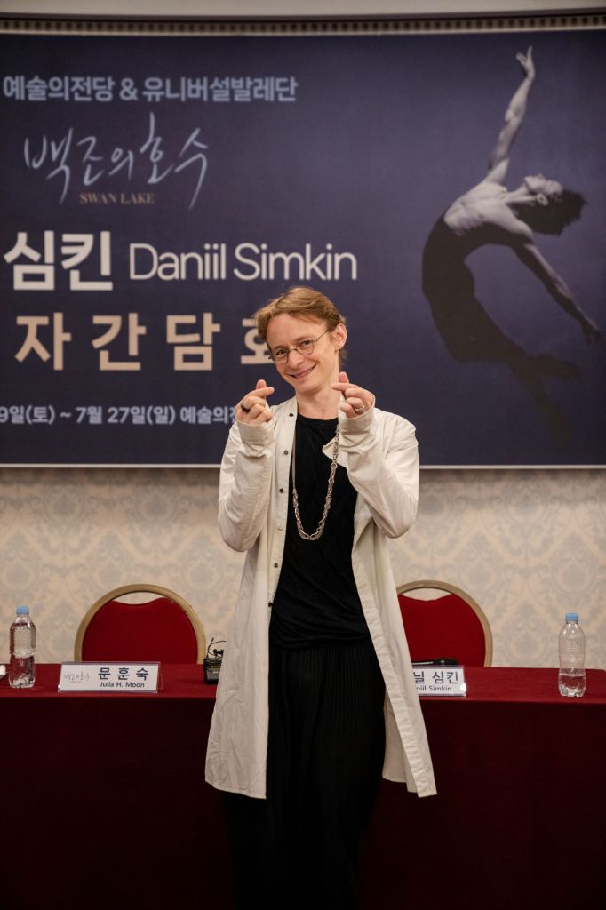 예술의전당과 유니버설발레단은 오는 19일부터 27일까지 예술의전당 오페라극장에서 백조의 호수를 공동 기획 공연으로 선보인다. 심킨은 19일과 23일 공연에서 유니버설발레단 수석무용수 홍향기와 호흡을 맞춘다.