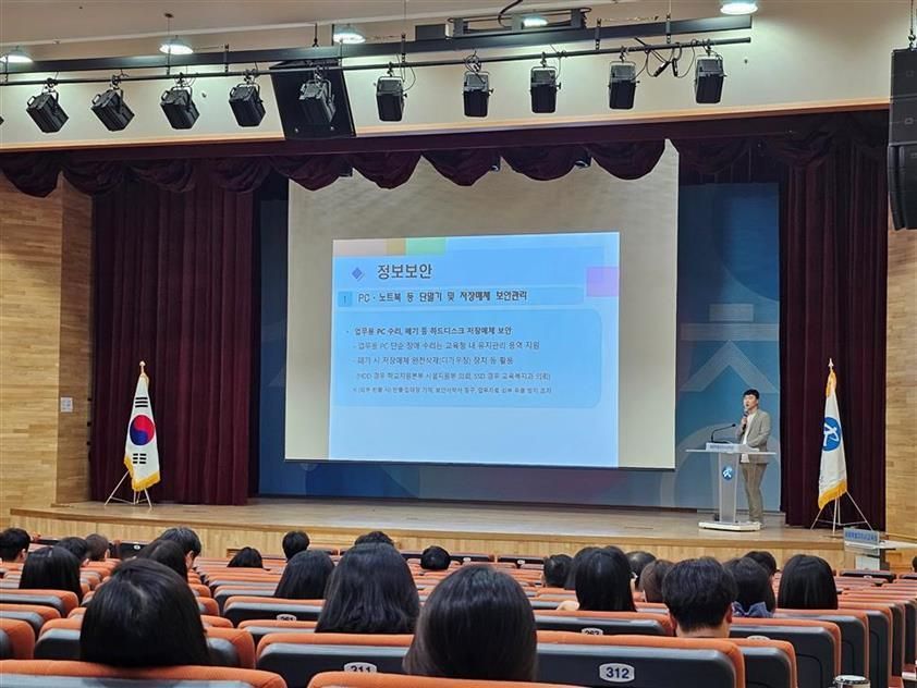 이 교육은 교육행정을 수행하는 공직자의 정보 보안 인식을 제고하고 개인정보 관리 역량을 강화해 안전한 교육행정 환경을 조성하고자 마련됐다. 정보보호의 기본 개념부터 일상 업무에서 실천 가능한 정보보안 및 개인정보 보호 관리 방법까지 폭넓게 다루는 시간으로 진행됐다.