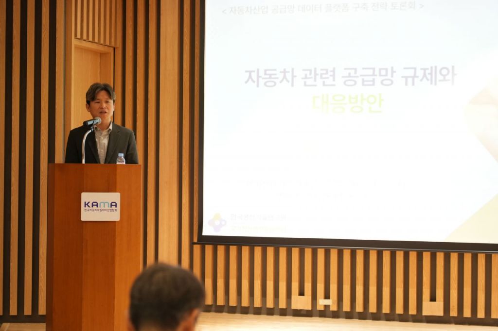 신호정 한국생산기술연구원 실장은 9일 서울 서초구 자동차회관 그랜저볼룸에서 열린 '자동차산업 공급망 데이터 플랫폼 구축 전략 토론회'에서 발언하고 있다. 자동차모빌리티산업연합회(KAMA)
