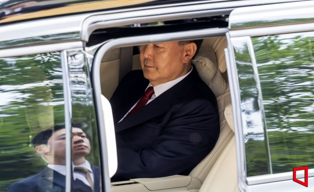 윤석열 전 대통령이 9일 서울 서초구 서울중앙지법에서 열린 직권남용 등 혐의 영장실질심사(구속 전 피의자 심문)에 출석하기 위해 법원에 도착해 하차를 기다리고 있다. 12·3 비상계엄 사태의 '정점'으로 조은석 특별검사가 이끄는 내란 특검팀에 구속영장이 청구된 윤 전 대통령은 지난 1월 18일 내란우두머리 등 혐의 영장실질심사를 받은 지 172일 만에 재구속 기로에 서게 됐다. 2025.07.09 사진공동취재단