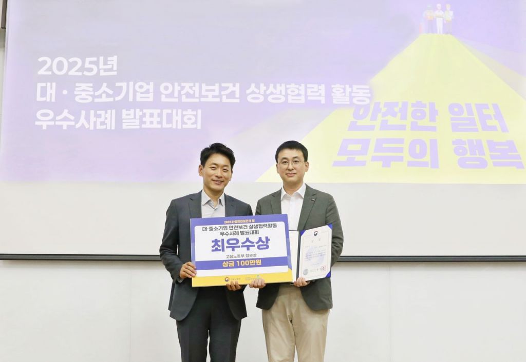 현대글로비스는 '2025년도 대중소기업 안전보건 상생협력활동 우수 사례' 발표 대회에 참가해 최우수상인 고용노동부 장관상을 받았다고 10일 밝혔다. 이번 행사는 7월 산업안전보건의 달을 맞아 고용부가 주최하고 한국산업안전보건공단이 주관한 행사다.