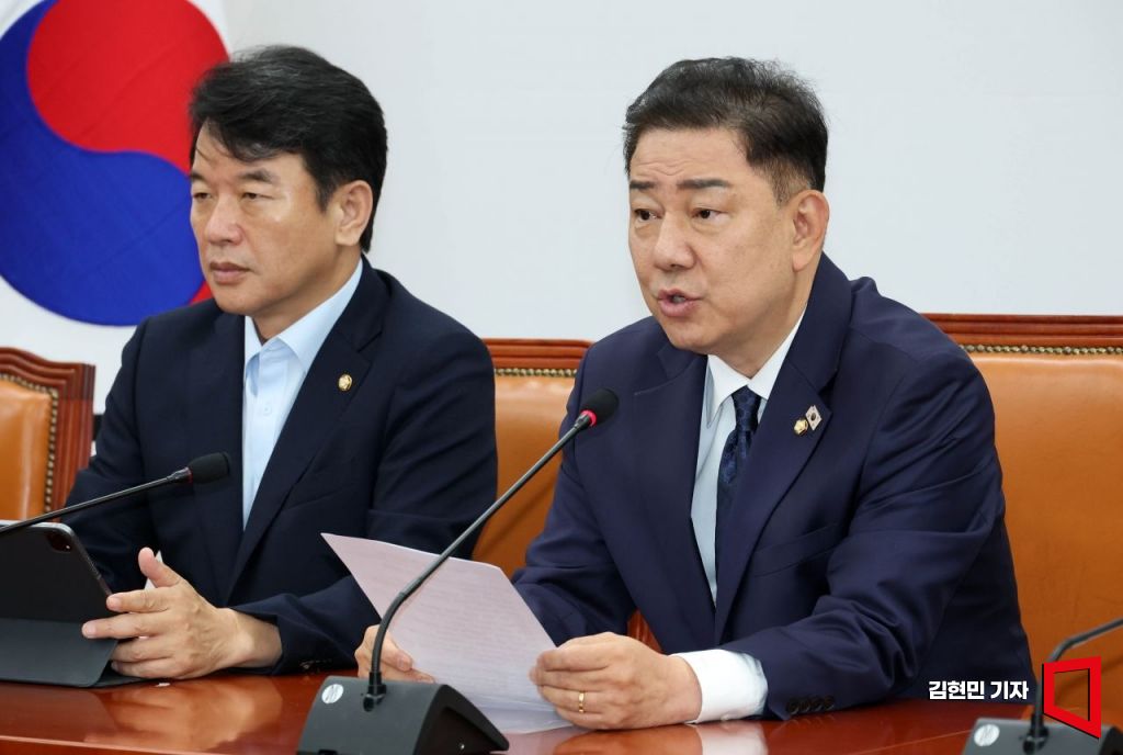 10일 여의도 국회 본청에서 열린 민주당 정책조정회의에서 김병기 당대표 직무대행 겸 원내대표는 "내란특검은 신속하고 치밀한 수사로 윤석열과 내란 일당의 죄상을 낱낱이 밝혀주길 바란다"며 "특히 국가 반역의 외환죄도 철저하게 수사해야 한다"고 전했다.