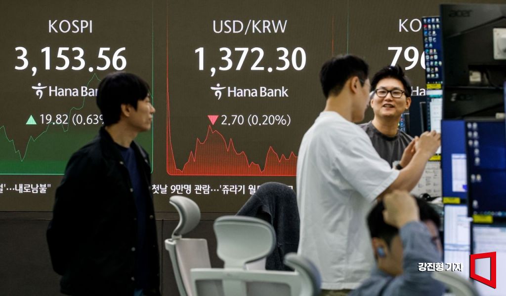 코스피 지수가 연고점을 재차 경신하며 상승세를 이어가고 있는 10일 서울 중구 하나은행 딜링룸에서 딜러들이 업무를 보고 있다.