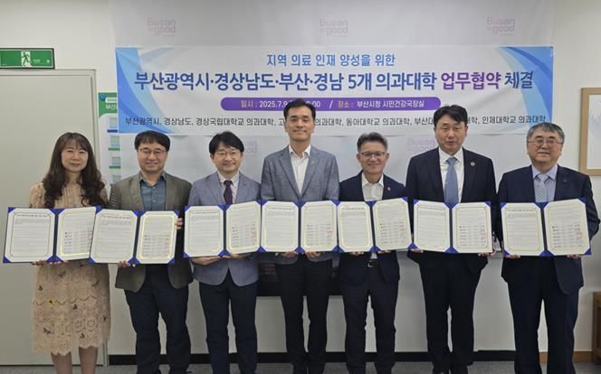 부산시는 지난 9일 경남도와 부산대·인제대·고신대·동아대·경상국립대 등 5개 의과대학과 함께 '지역 의료인재 양성을 위한 업무협약'을 체결했다고 10일 알렸다.