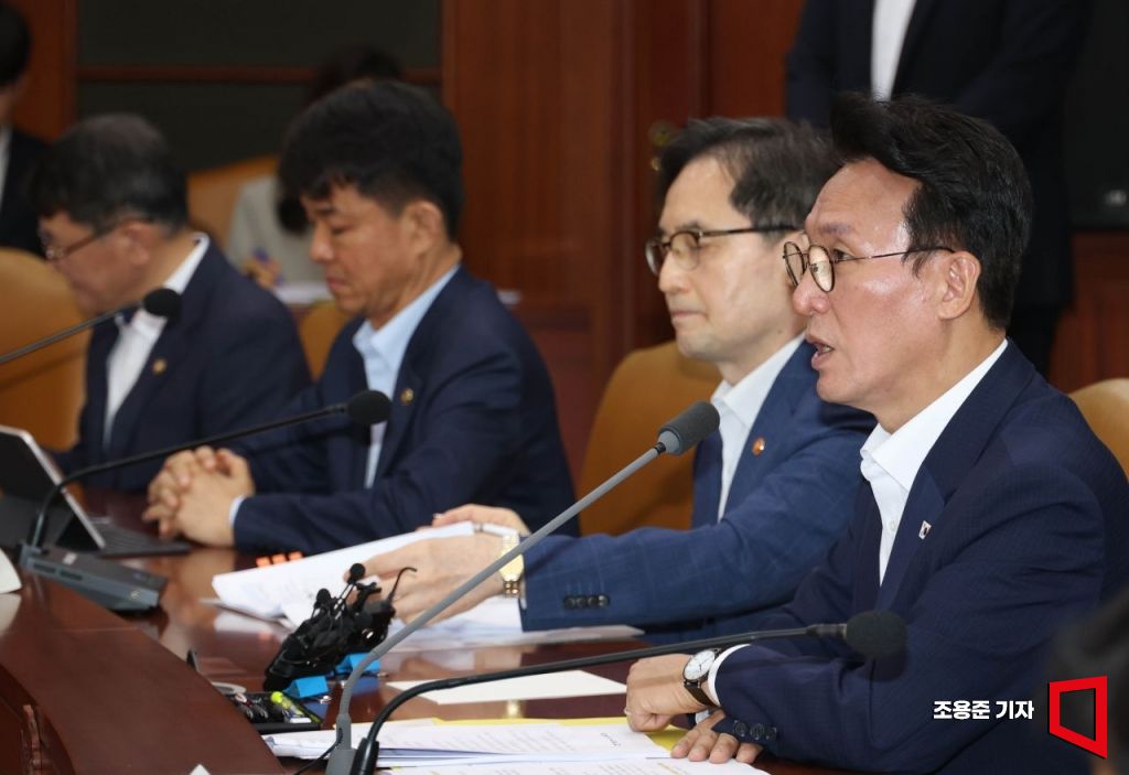 김민석 국무총리가 10일 서울 종로구 정부서울청사에서 열린 첫 국정현안관계장관회의를 주재하고 민생, 폭염 등 현안에 대해 발언하고 있다.